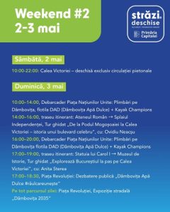 Punctul culminant al programului va avea loc duminică, la Debarcaderul din Piața Națiunilor Unite. Bucureștenii sunt invitați să descopere orașul dintr-un unghi rar accesibil, prin plimbări gratuite cu caiacul direct pe cursul Dâmboviței. Experiența este gândită pentru a oferi un ritm de vizitare mai calm, fără a fi necesară o rezervare prealabilă. În paralel, sâmbătă, Calea Victoriei va rămâne, conform tradiției, spațiul preferat pentru promenadă și redescoperire urbană.