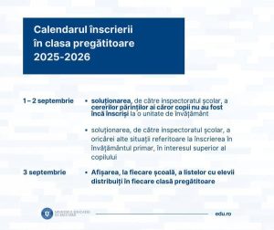 Ministerul Educației a aprobat calendarul oficial pentru înscrierea copiilor în clasa pregătitoare pentru anul școlar 2025-2026. Procesul de înscriere urmează să se desfășoare conform unor reguli clare, iar părinții sunt îndemnați să consulte informațiile disponibile pentru a se asigura că respectă toate etapele necesare