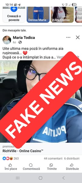 Potrivit unui comunicat publicat ieri, mai multe conturi false, create special pentru manipulare, promovează povești fabricate despre polițiști sau angajați SMURD care ar fi fost demiși sau ar fi demisionat și s-ar fi „îmbogățit” ulterior din jocuri de noroc.