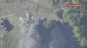 Fotografiile sunt cadre din două videoclipuri cu lovituri asupra vehiculelor ucrainene în satul Cherkasskoe Porechnoe din regiunea Kursk și arată porțiuni de drum la o distanță de aproximativ 200 m (656 ft).